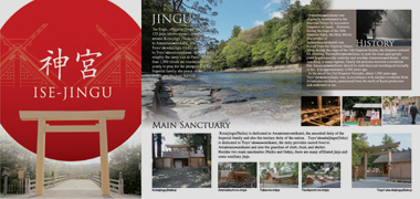 Ise Jingu, officially 'Jingu', includes 125 jinja(shinto shrine), centered around Kotaijingu(Naiku), dedicated to Amaterasu-Omikami, and Toyo'uke-daijingu(Geku), dedicated to Toyo'uke-no-Omikami. Its area is roughly the same size as Center of Paris. More than 1,500 rituals are conducted here yearly to pray for the prosperity of the Imperial family, the peace of the world, and the huge harvest.