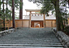 A divine palace of Amaterasu-Omikami stands here. The Holy Mirror (a symbol of Amaterasu-Omikami) is enshrined inside the main sacred palace at the innermost courtyard of the main sanctuary and the main palace is enclosed with four rows of wooden fences. Pilgrims usually worship the enshrined kami in front of the gate of the third row of the fence.