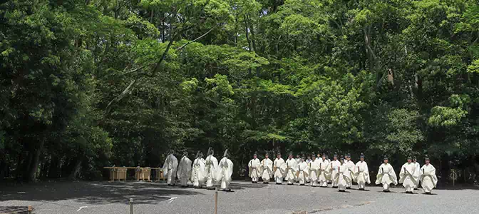 神宮には、神嘗祭を中心に年間1500回に及ぶお祭りを滞りなく行うため、神宮神田、神宮御園、御塩浜などの御料地があり、神様に捧げられる品々は古儀を尊重して清浄に調製されます。