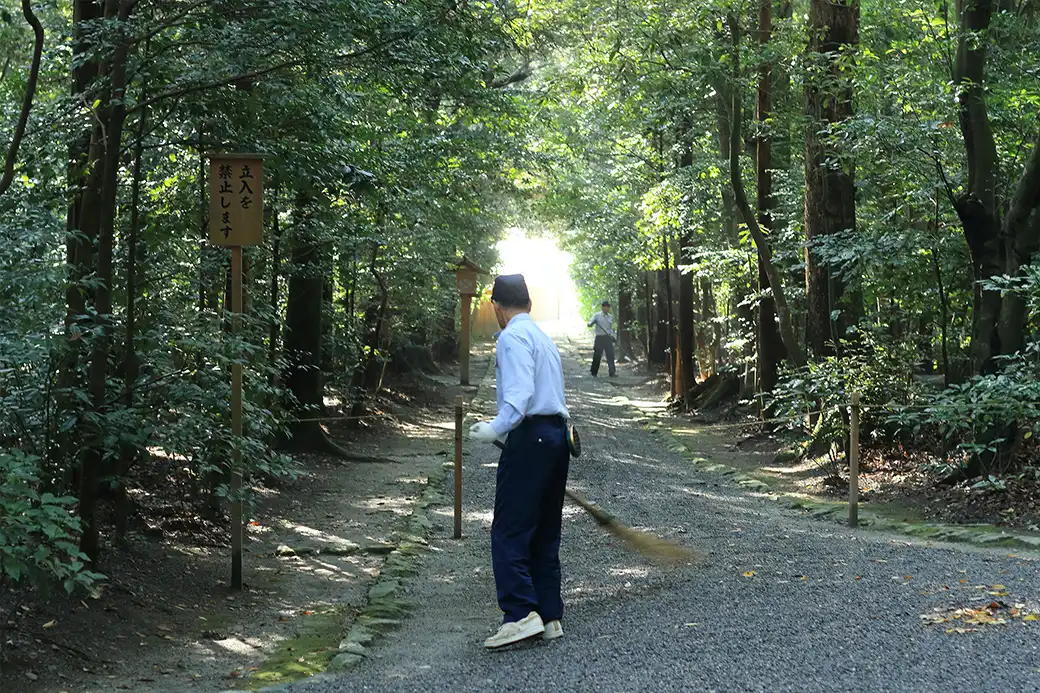 神宮では神職以外にも様々な職種の職員が活躍しております。令和7年より神宮式年遷宮のご準備が始まり、殿舎の造営に関係する職員はもとより、多くの参拝者をお迎えする職員が欠かせません。