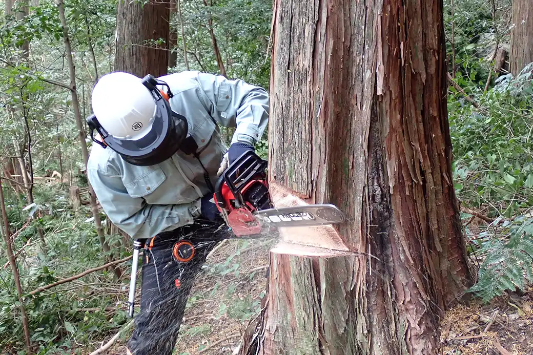 技師(管理・事務)、林業作業員(現場での作業)にわかれて、職務にあたっていただきます。神宮の宮域林の管理を主な業務として、式年遷宮に向けたヒノキの育成をしております。宮域林ではヒノキの育成とともに五十鈴川の清らかな流れや景観の保全のため針葉樹と広葉樹が混交する豊かな森づくりを目指しています。