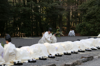 年の始めにあたり、宮中三殿において天皇陛下御親ら皇位の元始を祝い奉るお祭りを執り行われるのにあわせ、神宮では両宮をはじめ諸宮社にお祭りを奉仕し、皇位の無窮をお祈りします。