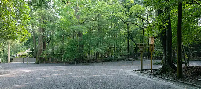 内宮神域の守り神、四至とは神域の四方を意味します。社殿や御垣はなく、石畳の上に祀られます。